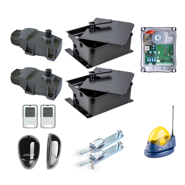 Automazione completa 230 Vac per cancelli a battente fino a 3.5 metri e 800 kg.