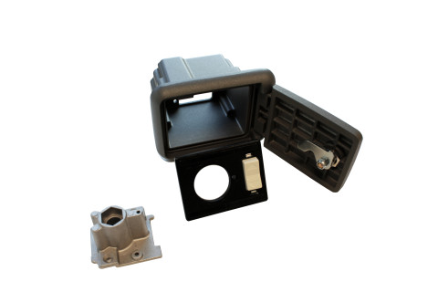 BLDR/I Box in alluminio da incasso con pulsante e leva di sblocco.