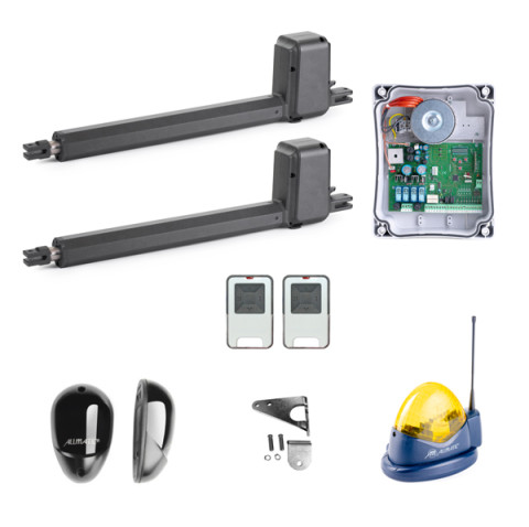 Automatización completa 24 Vdc para puertas a hoja hasta 3 metros o 200 Kg.