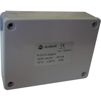 T.CO.O-R.CO.O Bidirectional radio band 868 MHz for the connection of mechanical or resistive safety edges. Devices in watertight box for the external installation. R.CO.O is also available with simple box.