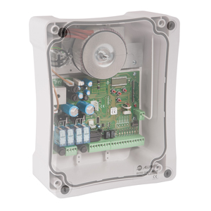 BIOS2 24V Control unit for 1 or 2 wings gate without encoder. Easy and fast learning function, adjustable electronic clutch and anti-squeezing security device. Wide possibility to adjust the door’s motion. Extractable terminal board to make the installation and the maintenance easier.